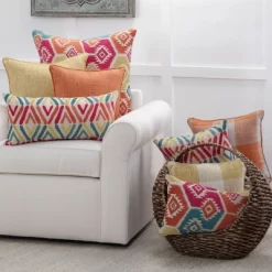 2pk 18″ X 18″ Printed Diamond Geo Linen Textured Decorative Throw Pillow Set – Candies