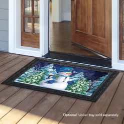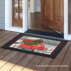 Briarwood Lane Festive Covered Bridge Christmas Doormat Red Pickup Truck Indoor Outdoor 30″ X 18″