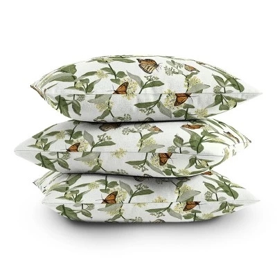 16″x16″ Gyaneshwari Dave Pinecone Dream Monarch's Milkweeds Square Throw Pillow Green – Deny Designs