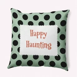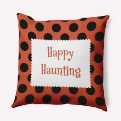 16″x16″ Halloween ‘Happy Haunting’ Dots Square Throw Pillow – E By Design