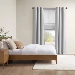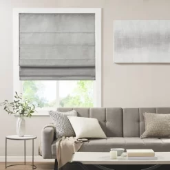 Our Aberdeen Printed Faux Silk Room Darkening Cordless Roman Shade offers a modern and convenient update to your home decor. This roman shade flaunts a tonal grey faux silk textured fabric to create a stylish and beautiful, look and feel. Also achieving the OEKO-TEX certification, these curtains do not contain any harmful substances or chemicals ensuring quality comfort and wellness. A thermal foambacking on the reverse provides energy efficiency and a room darkening effect, for enhanced privacy. The cordless retraction mechanism makes the room darkening shade easy to open and close the throughout the day, while the detachable fabric face allows for easier assembly and cleaning by lightly shaking or dusting. Please note: The top face fabric is detachable from the hook and loop fastener, but is NOT fully removable. Ready to install right out of the packaging, this roman shade can be hung inside or above the window pane allowing you to find the perfect fit for your home decor. Shade measures 64-inches long and comes in 5 width options to suit multiple standard window sizes. Each roman shade is sold as a single and comes with a printed instructional guide as well as an instructional video available on site. Assembly is required.