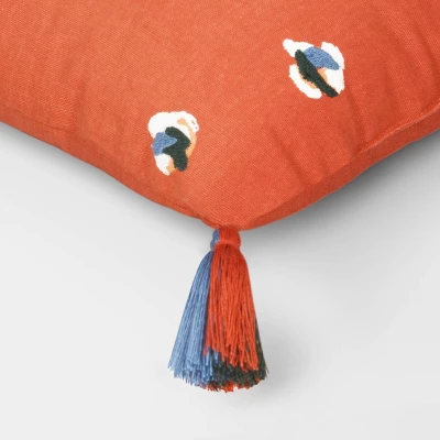 Upgrade your sitting arrangement with this Abstract Dots Embroidered Cotton Square Throw Pillow from Room Essentials™. This square throw pillow features a 100% cotton cover that’s decorated with abstract dot embroidery and corner tassels for added charm. The soft fill insert offers cushioned comfort, and the sewn-seam closure gives it a finished look. You can place it on your couch or armchair or toss it on the floor for versatile use.