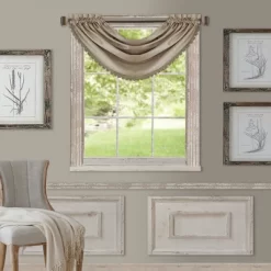The All Seasons valance offers an elegant silk look and room darkening benefits. A versatile color palette makes this window valance perfect for any décor. Waterfall valance features scalloped decorative trim and a beautiful drape. Matching curtains sold separately. 100% polyester. Sold as a single valance, multiple valances needed to create layered look. Easy care, machine washable.