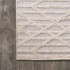 Inspired by vintage Moroccan rugs, our modern version is power-loomed with a short pile. Rows of diamonds are woven in ivory on a neutral background. Add Bohemian style to your living room, dining room, entry or kitchen with this easy-care rug.
