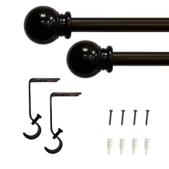 LUMI Traditional Ball Finial Single Drapery Rod Sets in Brown and ORB Bronze. These all-inclusive drapery rod sets come complete with adjustable sizing telescoping poles, finials, and installation brackets to beautify any traditional window curtain treatment. Featuring two versatile color finishes; Brown and Oil Rubbed Bronze (ORB) finishes complementing a variety of timeless and traditional decor styles. These complete drapery curtain rod sets are available in Brown: 28″-48″, 48″-84″, 84″-120″ inches; & in ORB Bronze 36″-72″, 72″-144″ inches. Unique ceiling mountable, 3pc extendable brackets and all mounting hardware are included for a quick and easy home installation.