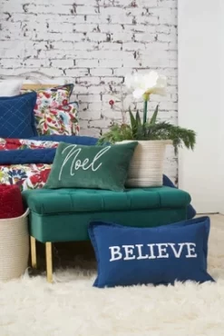 These lovely cheerful pillows are made of a cozy cotton corduroy and feature a hand tufted seasonal greeting word that will brighten up any space for the holiday season.