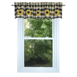 Beautiful black, gray, green, yellow, and candlelight white are featured in the Sunflower Buffalo Check Black Buttermilk Valance by Home Collections by Raghu! Pair with the rest of this gorgeous collection for a complete look! So very fresh and bright!