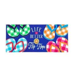 Add style to your doorstep with this beautiful set of 4-season sassafras switch mats. These durable and vibrant doormats make decorating year-round a breeze! Each switch mat fits perfectly into the accompanying tray that features a fleur de lis border and an inner base with diamond pattern holes to drain water. This set provides you with a stunning selection of doormats for every season! Includes six interchangeable mats and our signature mat tray. Suitable for indoor and outdoor use, the mat and tray are mildew resistant and feature an anti-slip backing. Spot clean with soap and warm water or hose down. For best results, display your mat in a covered or sheltered area to prevent fading.