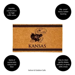 - Measures 28 x 16 inches. Step up your school spirit with this University of Kansas Logo Turf Mat.