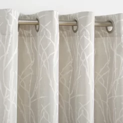 The Finesse linen look jacquard window curtain panels offer a luxurious contemporary linear branches graphic design that will grace any room in the home. This design combined with the rich warm look of linen will complete your room setting. The Finesse drapery is constructed with gorgeous, matte silver grommets and can be hung on your favorite curtain rod up to 1.25″ diameter, adding yet another touch to the richness and luxury of your decor. Our curtain panels are perfect for any living room, bedroom, family room, dining room, bathroom and office.