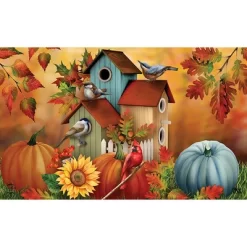 Fall Floral Birdhouses Doormat 18″ X 30″ Indoor Outdoor Briarwood Lane