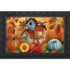 Fall Floral Birdhouses Doormat 18″ X 30″ Indoor Outdoor Briarwood Lane