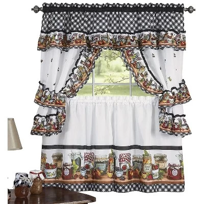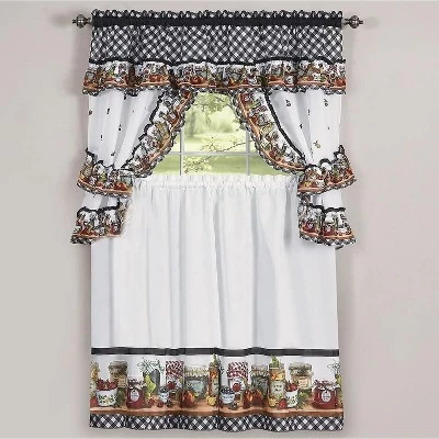 - What’s Included: (1) Valance With Attached Swags, (2) Tiers & (2) Tie Backs.