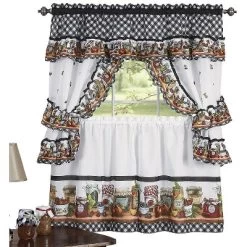 What’s Included: Complete set 1 Tailored Topper (Top part of the kitchen curtain set) 57″ x 36″ Tier Pair measures: 57″ wide x 36″ long or 57″ wide x 24″ long Depending on which one you choose (Each tier measures 27.5 inches wide and a combined 57 inches wide when put together) Machine Washable Fits best on windows up to 36″ wide 2 Tiebacks included as well