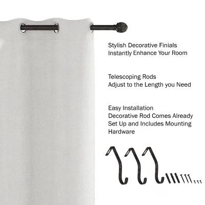 - EASY SET UP & INSTALLATION-The decorative curtain rod is packaged already set up – just set the length and install the mounts! This set also comes with all needed mounting hardware including screws, anchors and mounting brackets for easy installation.