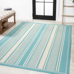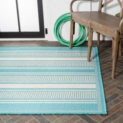 Inspired by the clean lines of modern design, our unique stripe-on-stripe rug has a durable low pile. This versatile two-tone pattern is woven in contrasting colors for a low-key, minimalist look. Add graphic punch to your living room, dining room, bedroom, or porch with this easy-care, family-friendly rug.