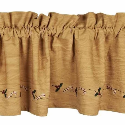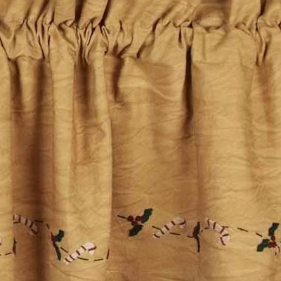 Holly berries, leaves and candy canes adorn this popular tea-dyed look. A great valance to give your windows a festive holiday feel!