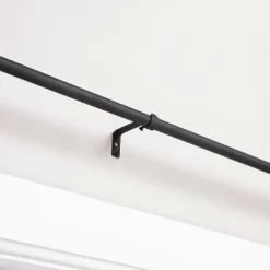 -The Kenney Bronn Industrial 3/4″ Room Darkening Curtain Rod is designed to wrap around your window frame to block window sidelight, reduce outside noises and drafts, and enhance privacy. The textured matte black finished industrial styled telescoping pipework steel rod is from 36 inches to 66 inches or from 66 inches to 120 inches or from 120 inches to 170 inches to fit a variety of window sizes and projects 3.75 inches from the wall. Use on larger windows in larger rooms, like your bedroom, dining room, or living room to hang light, medium, or heavyweight curtains. It is ideal for hanging curtains with grommets and can be used with clip rings. Pair with room darkening curtain panels (sold separately) to maximize light blocking, noise reducing, and privacy enhancing features.Room Darkening Rod Set Includes: one telescoping steel curtain rod with two mounting brackets, one center support, screws, drywall anchors, and installation instructions.