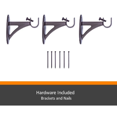 - Includes: one telescoping curtain rod with finials, two brackets, one center support, screws, drywall anchors, and installation instructions