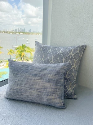 The Anaya Pure Air Collection includes Indoor/Outdoor pillows made with a new technology that purifies the air in direct sunlight; eliminating mold, bacteria, viruses and stains. The Natural Waves Indigo Indoor and Outdoor Pillow offers a unique formula that provides for a self-cleaning fabric that lasts from season to season. Outdoor Poly Insert Included.