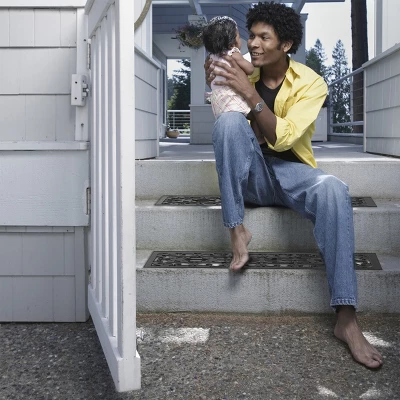 Breathe new life, and new traction, into plain and slippery stairs while simultaneously protecting them from wear with the Nature Spring Nonslip Stair Mats. These black ornate non-slip mats are great for indoor and outdoor use! Put them outside the entrance to your home to prevent dirt and moisture from tracking in. Put them inside to add grip to your stairs inside. Mats are made of a rubber material that is built to last through all seasons and made for minimal movement once mats are placed down. For added security, add double sided tape to the ground side of the mats!