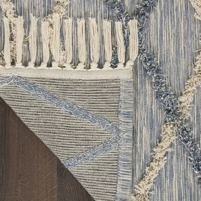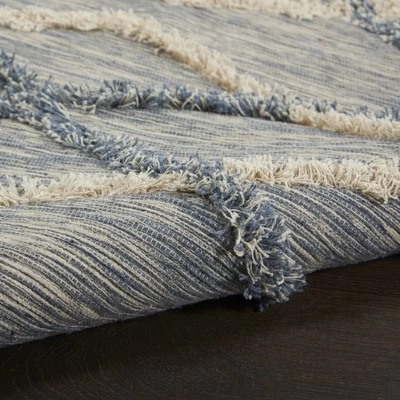 Refresh your decor with this soft and subtle accent rug in today’s modern neutrals. A soothing light grey and ivory weave brings an accent of texture and harmony into your room. Fringe finish completes its soft appeal! Perfect for your contemporary, eclectic or bohemian decor, in a light and airy open-diamond pattern. The cotton-polyester-rayon blend is spot cleanable. Great for the Kitchen