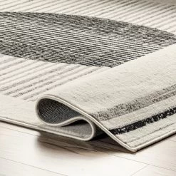 This area rug showcases the chic lifestyle of today, with its tasteful juxtaposition of neutrals and sleek geometric patterns. You’ll love the subtle details that will have you taking more than one glance at your new rug. Machine-made of polypropylene, a durable fiber that resists stains and fade. A rug pad is recommended to prevent slipping.