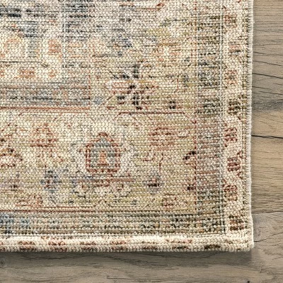 Welcome home the stunning elegant look of a vintage inspired area rug. Featuring a worn look and chic design, this area rug mimics the look of a one of a kind heirloom piece. The refreshingly lightweight cotton-polyester blend will add a natural yet durable addition to your floors.