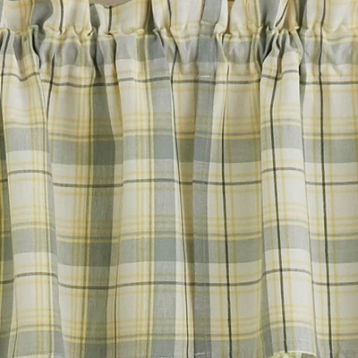 Accessorize your kitchen windows with this traditional country styled curtain swag for a charming touch. Features a classic plaid print in a brightening yellow, gray, and cream color palette. Complete the vintage farmhouse look in any room of the house by layering coordinating tier pairs to create a warm and welcoming atmosphere.