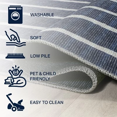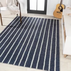 - A classic stripe rug gets a distressed look for rustic style in a modern cottage or farmhouse. Woven stripes have strie’ details for a handwoven effect. This durable, machine washable rug adds graphic punch to a living room, dining room, bedroom, or kitchen.