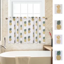 94% Polyester/6% Linen Blend Fabric at 160gsm With Pineapple Print Ready Made: 2 panel per package. Each panel measures 27W x 24L Inches( from top edge of installed rod to bottom) Stylish Design: Decorative pineapple pattern works well with many decorating Style: Modern farmhouse style, French Country Style, rustic/country style, etc Fits Well: 2-Inch high rod pocket works well with tension rods or normal rods for easy hanging, and you can adjust the length by being styled in rod pocket or with your own clip-rings. Serve Well: Allows nature light n while giving you a certain amount of privacy, perfect for kitchen, cafe, bathroom, loft, basement, children’s room, office room and other small windows Easy care: Machine wash cold, gentle cycle, do not bleach, tumble dry low, cool iron as needed. Follow care instructions on label Consider a similar item Amazon’s Choice jinchan White Kitchen Curtains 24 Inch Tier Curtains for Living Room Linen Textured Cafe Curtains for Bathroom Farmhouse Country Light Filtering Short Window Curtain Set Rod Pocket 2 Panels (580) $13.99 Climate Pledge Friendly Climate Pledge Friendly