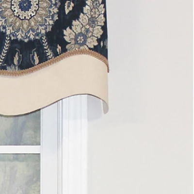 The wakeshire glory window valance by RLF Home goes beyond looking great with the modern damask design printed on a high-quality fabric. Centered Pattern construction so that each valance is a perfect match to each other. Layered look with coordinating bottom fabric and trim gimp décor. Valance fits windows up to 48″ in width; you may use multiples for wider windows. Valance will look great flat or gathered on your window. A 3″ Rod pocket will fit perfectly on a 2-1/2″ continental rod. But can be used with a regular 3/4″ curtain rod or decorative pole up to 1-3/8″ diameter. Measures: 50″ x 16″. Colors: Indigo and Garnet.