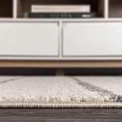 The neutral gray stripes in this rug are the perfect backdrop for modern furniture. Subtle tones of ivory and gray mingled throughout the background add a hand-woven effect. Simple and chic, this versatile rug is at home in a modern loft or classic farmhouse interior.