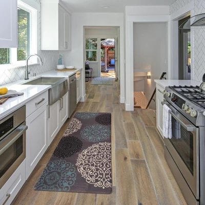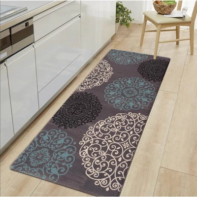 - Multi-purpose:Kitchen mats widely used for home decor,indoor front welcome mat,kitchen rug,laundry room,standing desk,back doors,garage,office. Nonskid backing holds the mat in place for extra safety.
