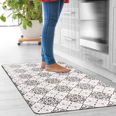 - Multi-purpose:Kitchen mats widely used for home decor,indoor front welcome mat,kitchen rug,laundry room,standing desk,back doors,garage,office. Nonskid backing holds the mat in place for extra safety.