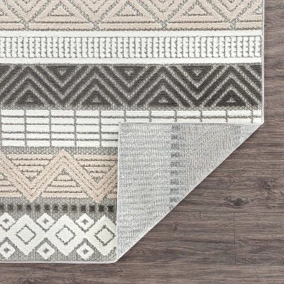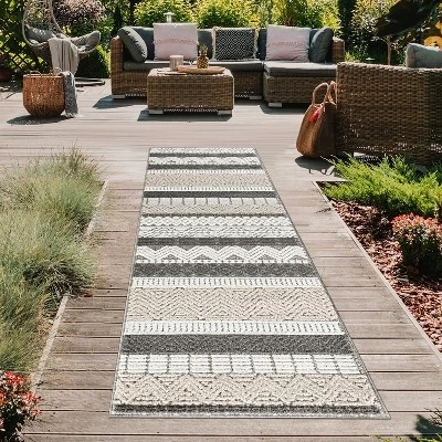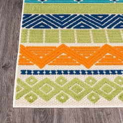 Unroll this mesmerizing rug in or out of your home. The geometric design accompanies sleek bohemian pattern and vivid colors. The durable pile height allows it to be cleaned quickly and effectively. Made with 100% polypropylene fibers, this rug epitomizes convenience, persistence and allure.For indoor or outdoor use. This collection offers area rugs that are suitable for all indoor/outdoor spaces.