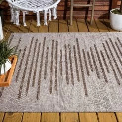 Inspired by vintage Moroccan rugs, our modern striped rug has a soft, low pile. The stripe pattern is woven down the center in a inspired design that recalls traditional Berber rugs. Add some Bohemian style to your living room, bedroom, or reading nook with this easy-care rug.